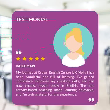 At Crown English Centre UK, we immerse you in real English through engaging conversations, media, and fun activities, ensuring consistent practice and measurable progress in your language skills. Our services align with the CEFR framework and the British curriculum, providing structured learning that fosters growth in grammar, vocabulary, listening, and speaking skills.